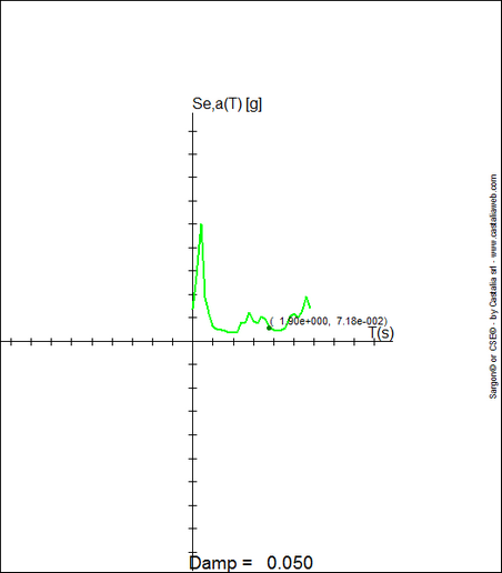 Il picco è a 0.89g, ovvero circa 4.5 volte la PGA, ben lontano dalla amplificazione 2.5 circa degli spettri di normativa. Se si tracciano i segnali che hanno dato luogo al massimo, si ottiene la curva seguente: