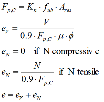 | La tensione tangenziale "di calcolo" è posta eguale al valor medio tra τave e τmax, ammettendo quindi una parziale redistribuzione. Infine, il modulo di resistenza a taglio Av,v è posto eguale al reciproco della tensione tangenziale "di calcolo" (il taglio è eguale a 1): |