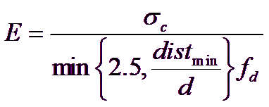 dove σc è la pressione di contatto, distmin, è la minima distanza della bullonatura dai bordi della faccia del pezzo da verificare su cui è applicato il bullone, ed fd è la tensione di progetto, funzione dello spessore del piatto e del fatto che si stia verificando agli stati limite o alle tensioni ammissibili.