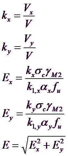 Le formule qui riepilogate sono una ragionevole estensione di quelle scritte in Ec3 per tener conto del fatto che il concetto di “interno” o “esterno” dipende dalla direzione e dal verso della forza, ed inoltre per considerare il caso in cui la forza sia inclinata. Nel caso in cui la forza sia orizzontale o verticale si ritrovano le formule di EC3. Negli altri casi la formula adottata è comunque tale da rispettare l’equilibrio.