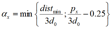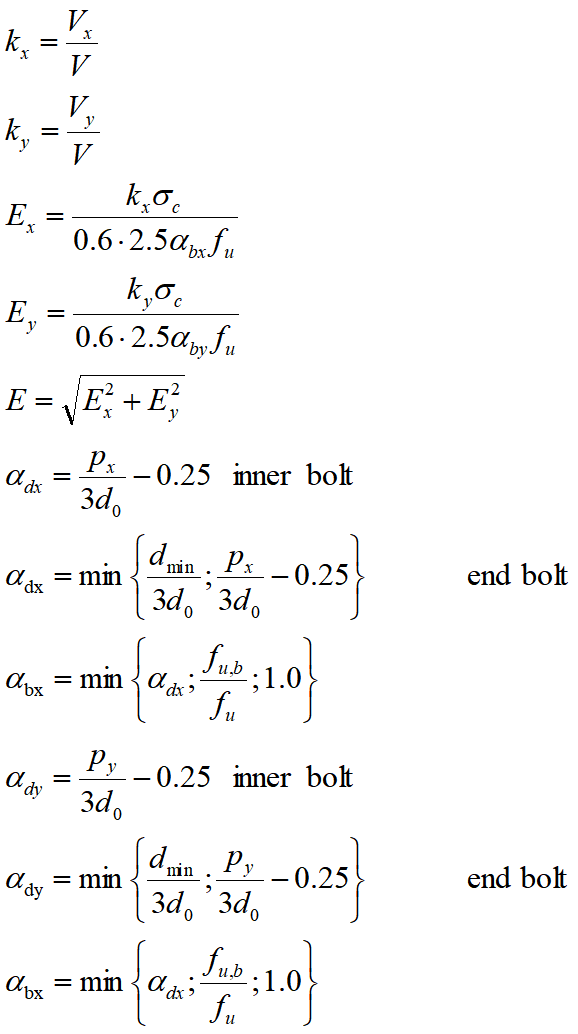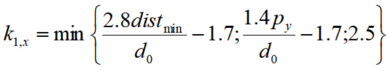 I valori di k1 ed α dipendono dalla direzione del carico e dalla posizione del bullone considerato. Considerando la direzione x si ha, essendo px il passo dei bulloni in direzione x