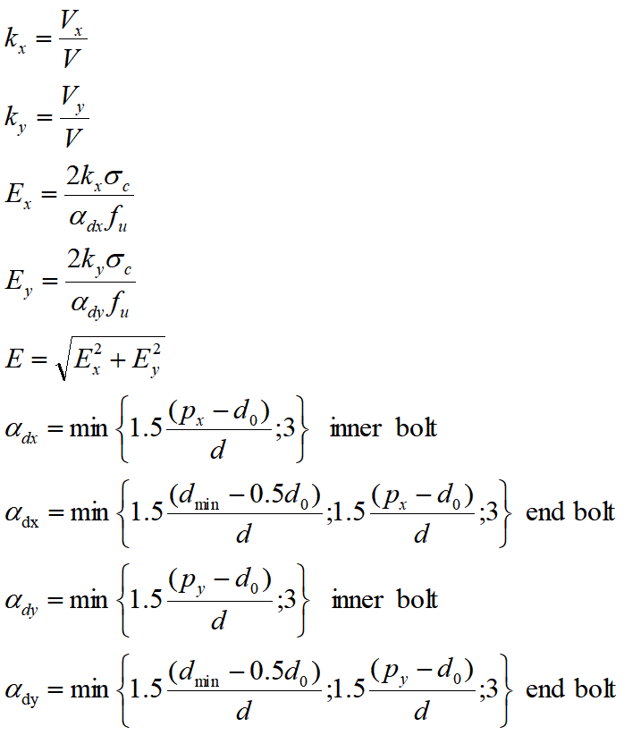 I valori di ex ed ey dipendono dalla direzione del carico e dalla posizione del bullone in esame. Per la direzione x, detta px la distanza tra i bulloni in direzione x, abbiamo