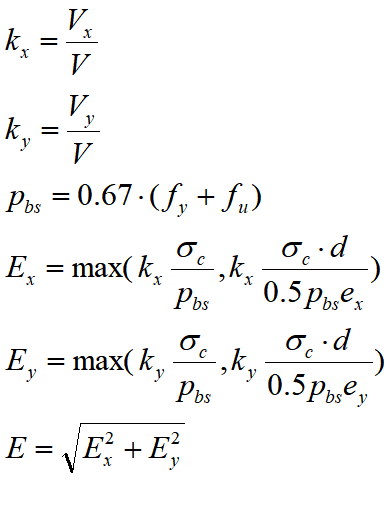 Posto che fu sia la tensione di rottura, fy quella di snervamento, σc lo sforzo di contatto dovuto a V, ed E il coefficiente di sfruttamento finale, abbiamo: