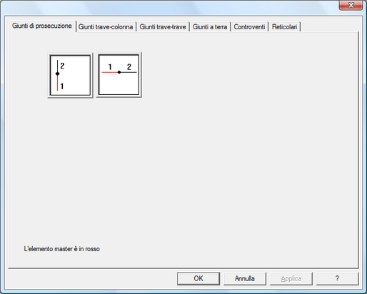 In questo dialogo é possibile scegliere uno dei giunti di prosecuzione disponibili. Cliccando sullo schema desiderato, si passa al dialogo in cui verranno definite le proprietà delle membrature.