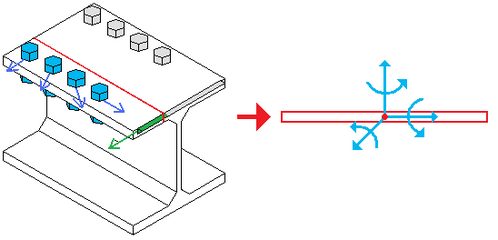 Stabilite le sezioni, CSE valuta gli effetti dei pertinenti unitori (con il sistema dei singoli bulloni e delle parti di cordone pertinenti), sul baricentro della sezione di verifica considerata. Nel fare questo si scartano i contributi che provengono da unitori o da parti di unitore che si trovano “al di là”, in senso topologico, della sezione verificata. Ad esempio per il punto (c ) 4 della figura precedente, si terrà conto dei soli bulloni e parti di cordone presenti sulla semi ala superiore sinistra.