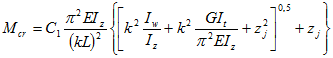 nella quale Ncr,y è il carico critico per instabilità flessionale attorno all'asse y (asse 2, di simmetria). Si noti che se y (2) è di simmetria allora z0=0. Se invece la simmetria è relativa all'asse z (o asse 3, symmetry = 3), le formule diventano le seguenti: