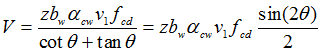 Dove fywd è la tensione di progetto dell’acciaio delle staffe, in pratica fyd, e q è l’angolo di inclinazione delle bielle di calcestruzzo compresso, valutato mediante la seguente formula, ove esso figura come incognita, nella quale si eguaglia la componente di schiacciamento delle bielle di calcestruzzo a quanto per equilibrio proviene a causa del taglio applicato: