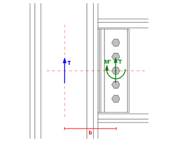 La torsione Mz genera un taglio nei bulloni che viene ripartito utilizzando il momento di inerzia polare della bullonatura rispetto al suo baricentro, e la distanza di ciascun bullone dallo stesso: