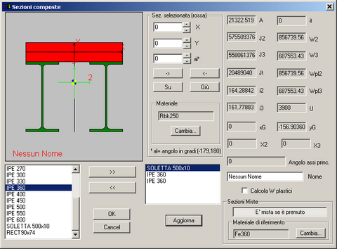Queste sezioni sono state ulteriormente ampliate per comprendere anche le sezioni miste. In sostanza le sezioni che compongono il profilo composto possono opzionalmente ricevere anche un materiale, e ciascuna, in generale, un materiale diverso.