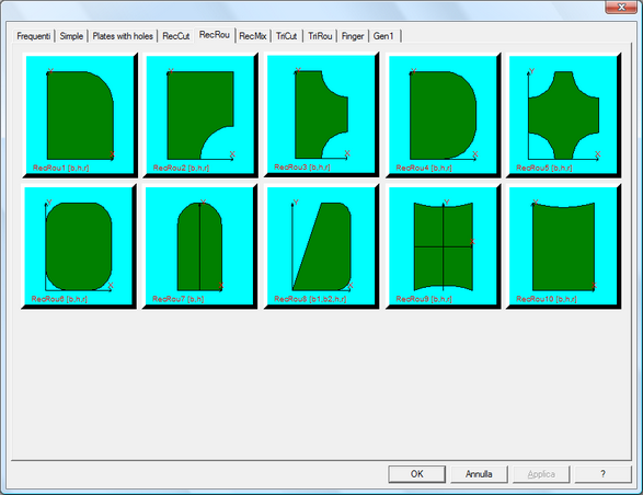 Frequenti Semplici Piatti forati RecCut RecRou RecMix TriCut TriRou Finger Generici