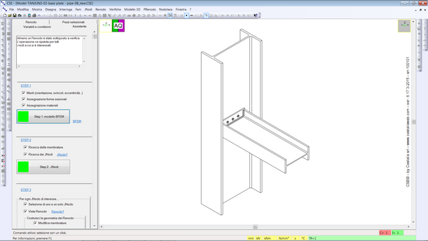 5.PFEM (pure fem): è un modello fem dell'intero nodo con tutti i componenti e tutti i mezzi di unione, creato automaticamente da CSE su richiesta dell'utente. Le membrature sono caricate all'estremo lontano dalla connessione da forze e momenti equivalenti a quelli indicati all'estremo connesso.